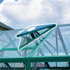 - Две форточки в крыше (форточный блок) — расположение в коньке усиливает естественную вентиляцию, что помогает поддерживать оптимальную температуру; вы создаёте здоровый микроклимат для растений без сложных систем.